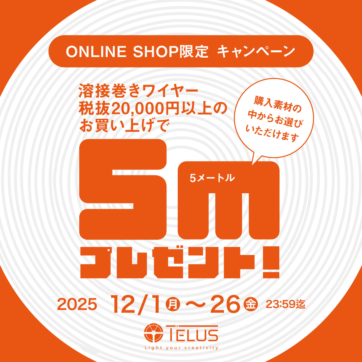 平素よりご利用いただき誠にありがとうございます。 下記期間中、オンラインショップにて巻きワイヤーをご注文いただいたお客様を対象に、特別キャンペーンを実施いたします。